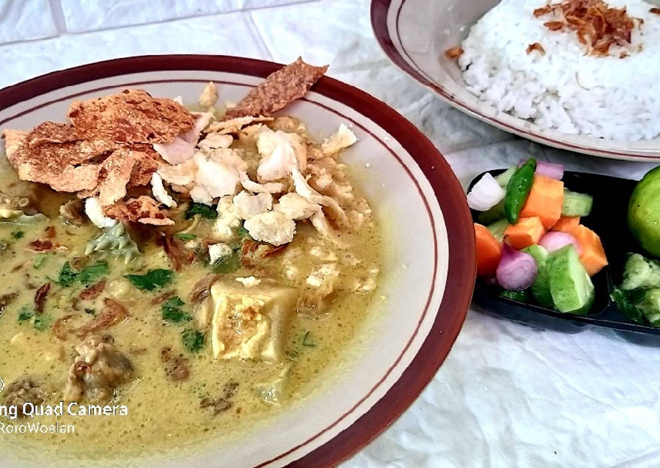 Ada beberapa hal yang sedikit banyak mempengaruhi kualitas rasa dari Soto Santan khas Bogor, pertama dari jenis bahan, lalu pemilihan bahan segar, sampai cara mengolah dan menghidangkannya. Tak perlu pusing kalau hendak menyiapkan Soto Santan khas Bogor yang enak di rumah, karena asal sudah tahu triknya maka hidangan ini bisa jadi sajian istimewa. Berikutnya merupakan gambar seputar Soto Santan khas Bogor yang bisa kalian jadikan ide.