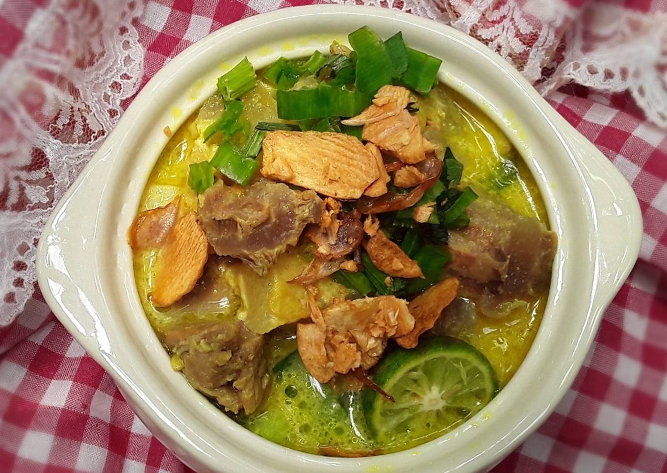 Banyak hal yang sedikit banyak mempengaruhi kualitas rasa dari Soto Kuning Bogor, pertama dari jenis bahan, lalu pemilihan bahan segar, hingga cara mengolah dan menghidangkannya. Tak perlu pusing jika mau menyiapkan Soto Kuning Bogor yang enak di rumah, karena asal sudah tahu triknya maka hidangan ini bisa jadi sajian spesial. Berikutnya merupakan gambar mengenai Soto Kuning Bogor yang bisa Anda jadikan wawasan.